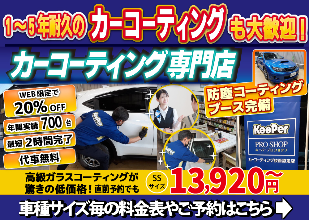 ※ お車の色、修理する場所や損傷具合によって、追加料金を頂く場合がございます。(例:屋根等)