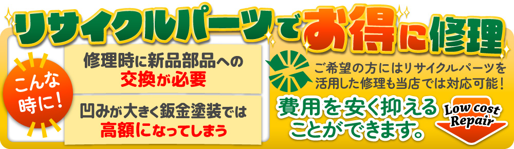 他店の見積書をお持ちいただいた際に、当社の最低価格を下回る場合には、他店見積価格記載の修理費用から1,000円OFFした料金で鈑金を実施いたします。